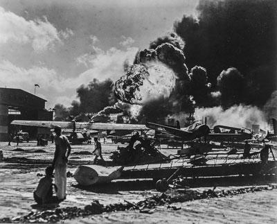 The Attack on Pearl Harbor was a surprise military strike by the Imperial Japanese Navy Air Service upon the United States (a neutral country at the time) against the naval base at Pearl Harbor in Honolulu, Territory of Hawaii, just before 08:00, on Sunday morning, December 7, 1941. The attack led to the United States' formal entry into World War II the next day.