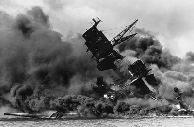 The USS Arizona. Sunk, but now a memorial at Pearl Harbor.