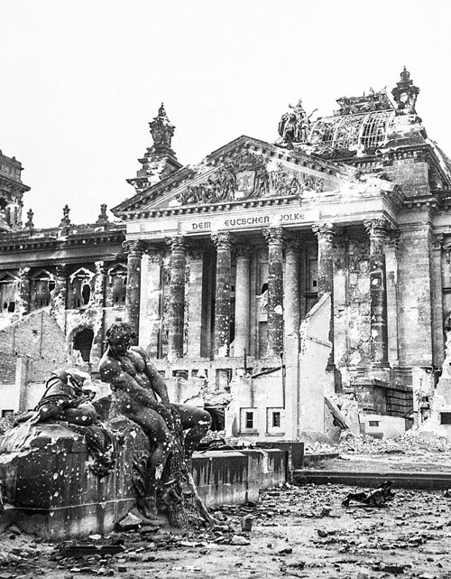 The building, never fully repaired after the fire, was further damaged by air raids. During the Battle of Berlin in 1945, it became one of the central targets for the Red Army to capture, due to its perceived symbolic significance. Today, visitors to the building can still see Soviet graffiti on smoky walls inside as well as on part of the roof, which was preserved during the reconstructions after reunification.